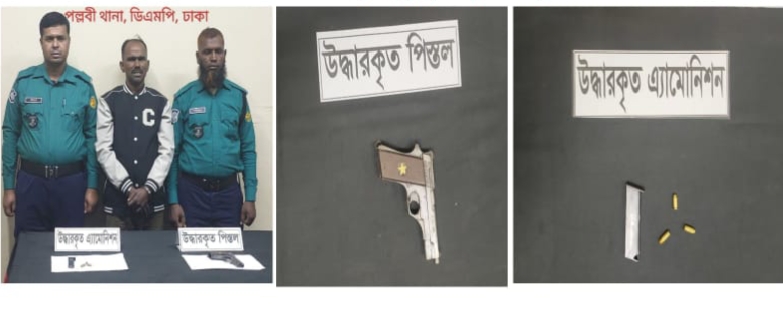 পুলিশ জানায়, ডিএমপি’র নিয়মিত অপরাধ দমন কার্যক্রমের অংশ হিসেবে গত ১৪ জানুয়ারি ২০২৬ খ্রিঃ, রাত আনুমানিক ভোর ০৫ টা সময় পল্লবী থানাধীন সেকশন-১১, বাড্ডিনিয়াবাদ হাউজিং সিটির পশ্চিম পাশে অবস্থিত পাকা রাস্তায় একটি সুপরিকল্পিত অভিযান পরিচালনা করা হয়। গোপন সংবাদের ভিত্তিতে পরিচালিত এ অভিযানে পুলিশ একটি ৭.৬৫ মডেলের বিদেশি পিস্তল, যার গায়ে স্পষ্টভাবে “USA” লেখা রয়েছে, উদ্ধার করে। পাশাপাশি উদ্ধার করা হয় ০১টি ম্যাগাজিন ও ০৩ রাউন্ড তাজা গুলি গ্রেপ্তারকৃত আসামির পরিচয়