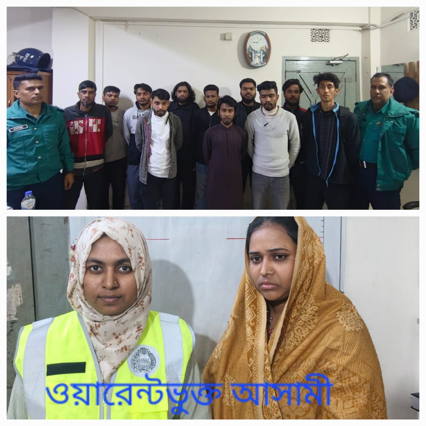 সিআর ওয়ারেন্টভুক্ত আসামীসহ ১২ জন গ্রেফতার