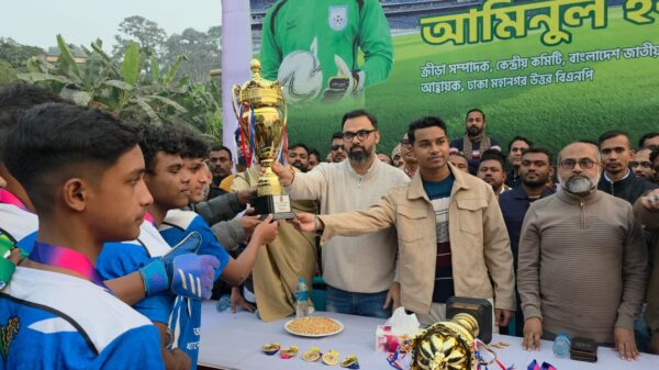 এস এম রফিক স্টাফ রিপোর্টার, জিয়া অনূর্ধ্ব–১৪ ওয়ার্ডভিত্তিক ফুটবল টুর্নামেন্ট–২০২৫-এর ফাইনাল খেলা অনুষ্ঠিত হয়েছে রাজধানীর পল্লবীর আরামবাগ ঈদগাহ মাঠে। শনিবার (১০ ডিসেম্বর) বিকেলে অনুষ্ঠিত ফাইনালে গোল্ডেন ফিউচার ক্লাবকে ১–০ গোলে